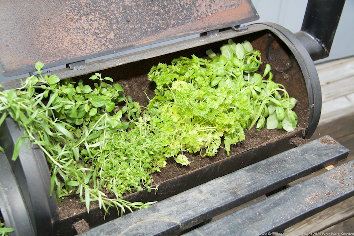 Vad gör man med en grill som är för liten för att grilla med? Jo - man plantera kryddor i den!