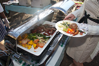På grillbuffén fanns det bland annat grillad flapsteak med perfekt råhet i mitten, grillad majs med bra smak, scampispett, lammkorv, sej i aluminiumfolie och bakad potatis. Till detta fanns tre olika potatissallader, romansallad med linser, ett par olika såser mm. En komplett buffé med bra variation och smak.